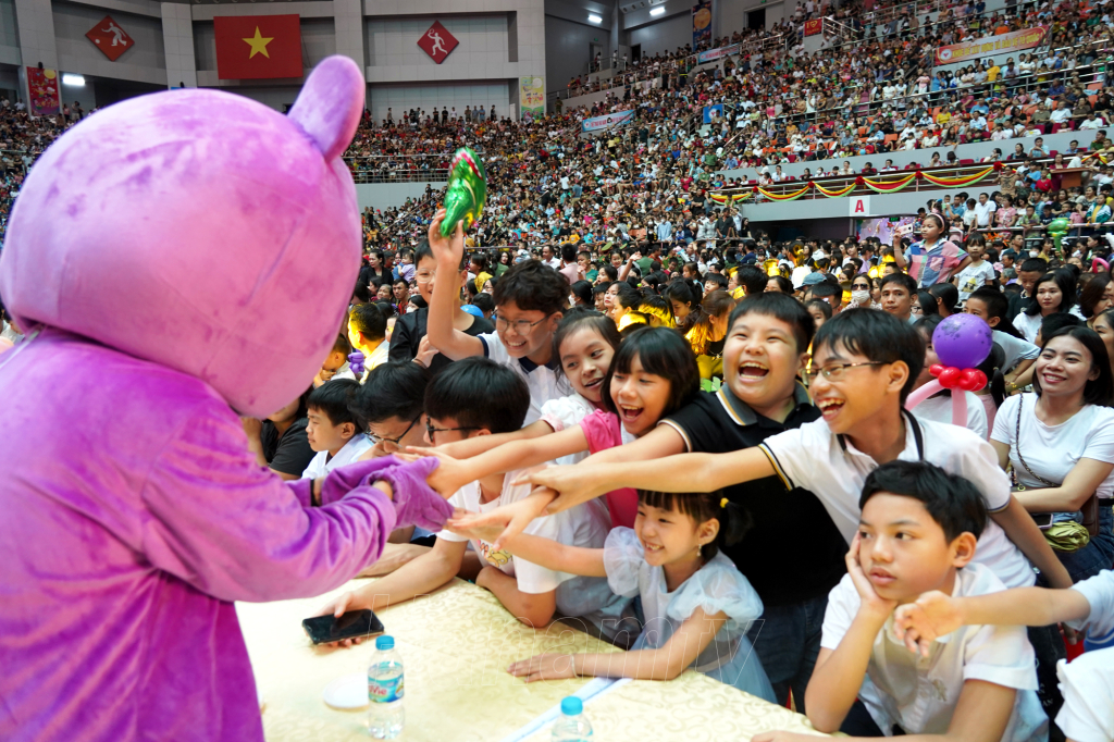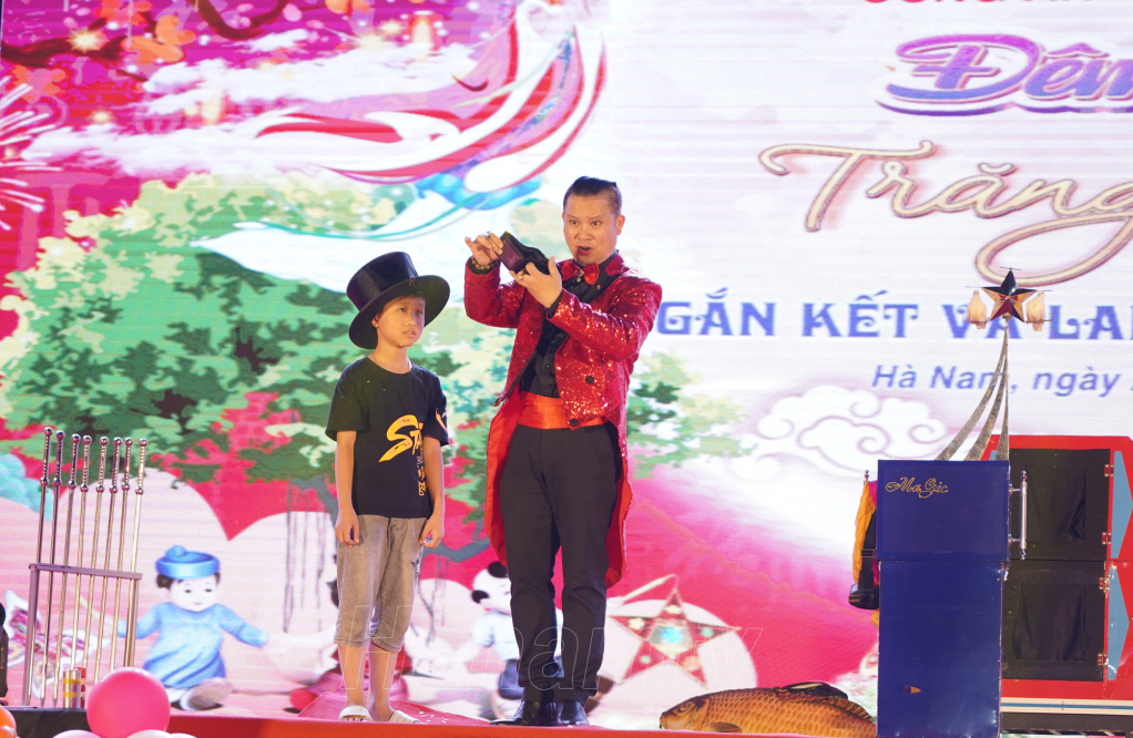 Tham dự chương trình “Đêm hội trăng rằm – Gắn kết và lan tỏa yêu thương”, các cháu thiếu nhi được thưởng thức chương trình văn nghệ vui tươi, ý nghĩa mang đậm nét văn hóa truyền thống, được tham gia phá cỗ, trông trăng và hòa mình trong không gian nghệ thuật với các ca khúc, điệu nhảy vui nhộn, các tiết mục biểu diễn múa lân, xiếc, ảo thuật điêu luyện do các nghệ sĩ chuyên nghiệp và các bạn thiếu nhi biểu diễn. Đặc biệt, các em được gặp gỡ, giao lưu và thưởng thức các tiết mục hài kịch, tham gia các trò chơi, đố vui cùng hai nghệ sĩ khách mời nổi tiếng - Nghệ sĩ Xuân Bắc và nghệ sĩ Tự Long.