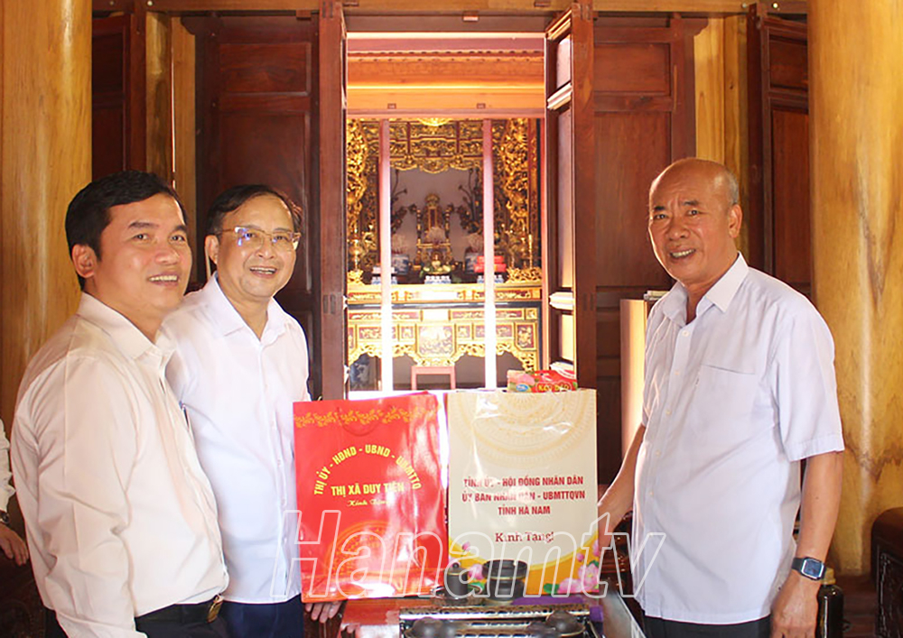 Đoàn do đồng chí Nguyễn Đức Vượng, Tỉnh uỷ viên, Phó Chủ tịch UBND tỉnh làm trưởng đoàn đã đến thăm, tặng quà gia đình các đồng chí lão thành cách mạng, các đồng chí nguyên lãnh đạo chủ chốt của tỉnh đang sinh sống trên địa bàn thị xã Duy Tiên.Đồng chí Phó Chủ tịch UBND tỉnh Nguyễn Đức Vượng thăm, tặng quà đồng chí Phạm Tư Lành, nguyên Ủy viên BTV Tỉnh uỷ, nguyên Trưởng ban Tổ chức Tỉnh uỷ