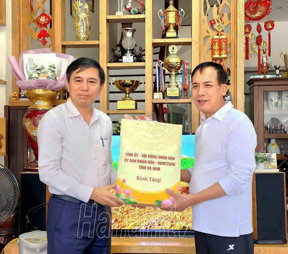 Đồng chí Đặng Thanh Sơn trao quà Tết Độc lập của Tỉnh ủy, HĐND, UBND, Ủy ban MTTQ tỉnh cho đồng chí Phạm Văn Lẫm, nguyên Ủy viên Ban Thường vụ Tỉnh ủy, nguyên Bí thư Thành ủy Phủ Lý.