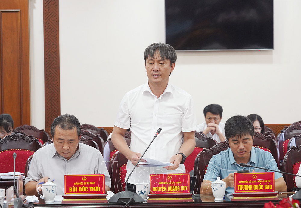 Giám đốc Sở Xây dựng Nguyễn Quang Huy trình bày các nội dung do sở chủ trì soạn thảo.Giám đốc Sở NN&PTNT Lê Hoàng Thuyên trình bày nội dung do sở chủ trì soạn thảo.