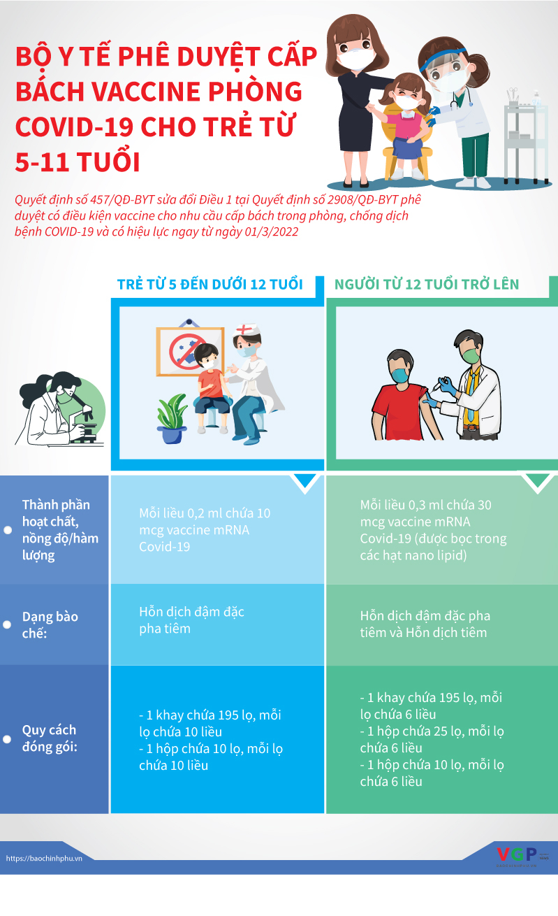 Thông tin loại vaccine phòng COVID-19 cho trẻ từ 5-11 tuổi được phê duyệt khẩn