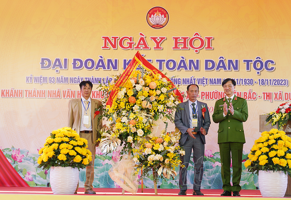 Đại tá Tô Anh Dũng, Ủy viên BTV Tỉnh ủy, Giám đốc Công an tỉnh tặng hoa chúc mừng cán bộ và nhân dân Tổ dân phố Văn Xá.Lãnh đạo thị xã Duy Tiên tặng hoa chúc mừng cán bộ và nhân dân Tổ dân phố Văn Xá.