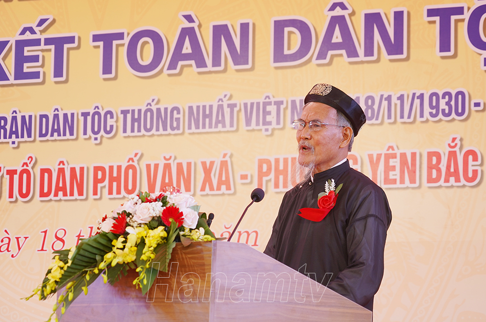 Đại diện người dân của Tổ dân phố Văn Xá phát biểu tại ngày hội.Phường Yên Bắc biểu dương các gia đình văn hóa tiêu biểu của Tổ dân phố Văn Xá.