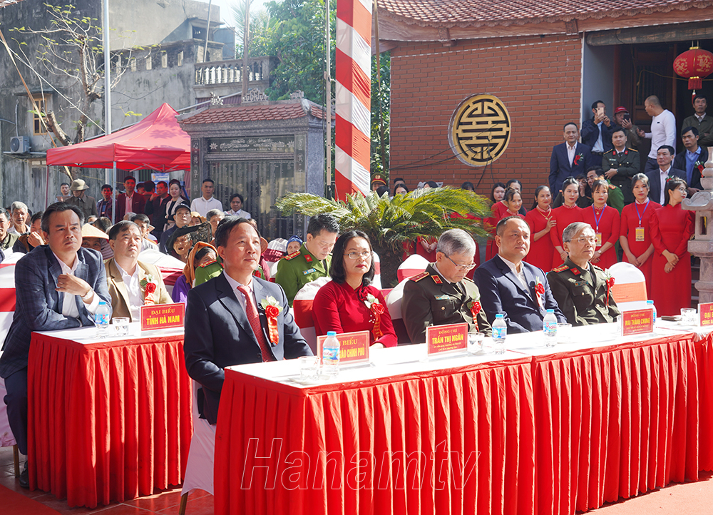 Cùng dự có đồng chí Lê Thị Thủy, Ủy viên Trung ương Đảng, Bí thư Tỉnh ủy, Chủ tịch HĐND tỉnh; ông Vũ Hoài Bắc, Trưởng Ban Tôn giáo Chính phủ; đồng chí Trần Thị Ngân, Ủy viên BTV Tỉnh ủy, Chủ tịch Ủy ban MTTQ tỉnh; Đại tá Tô Anh Dũng, Ủy viên BTV Tỉnh ủy, Giám đốc Công an tỉnh; đại diện lãnh đạo một số đơn vị trực thuộc Bộ Công an, lãnh đạo một số sở, ngành và thị xã Duy Tiên.