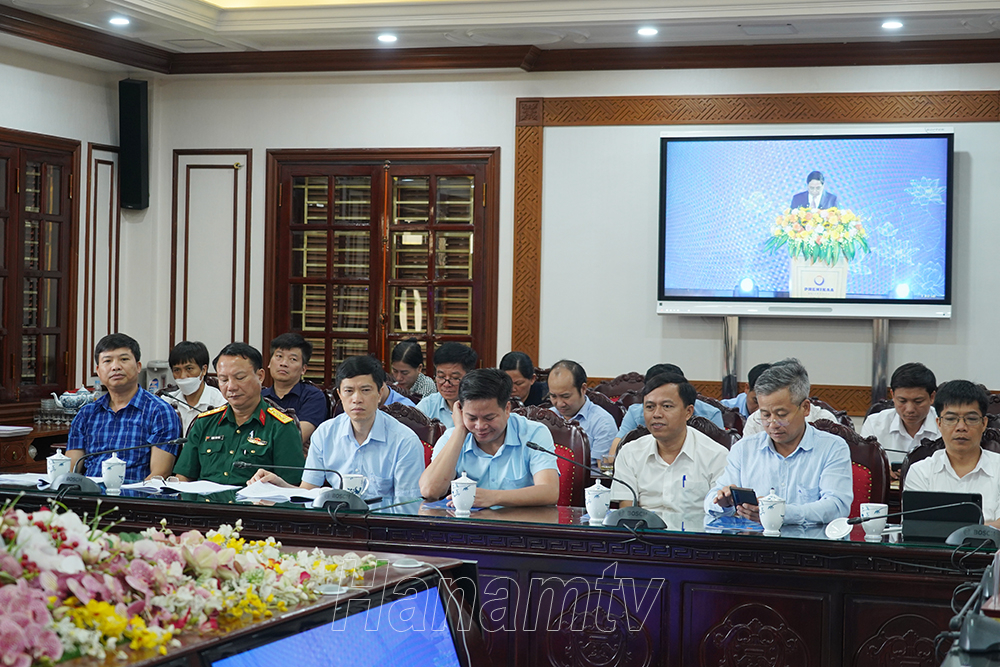 Đồng chí Trần Xuân Dưỡng, Tỉnh ủy viên, Phó Chủ tịch UBND tỉnh dự, chủ trì hội nghị tại điểm cầu UBND tỉnh Hà Nam.