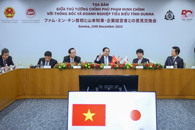 Chiều 15/12, trong chương trình hoạt động song phương tại Nhật Bản, Thủ tướng Phạm Minh Chính đã gặp Thống đốc tỉnh Gunma Yamamoto Ichita; dự tọa đàm với các doanh nghiệp của tỉnh Gunma; chứng kiến lễ ký bản ghi nhớ hợp tác giữa tỉnh Gunma và tỉnh Hà Nam; thăm Khu giao lưu người dân tỉnh Gunma - nơi người dân giao tiếp với chính quyền và nêu các ý kiến, đề xuất, kiến nghị.