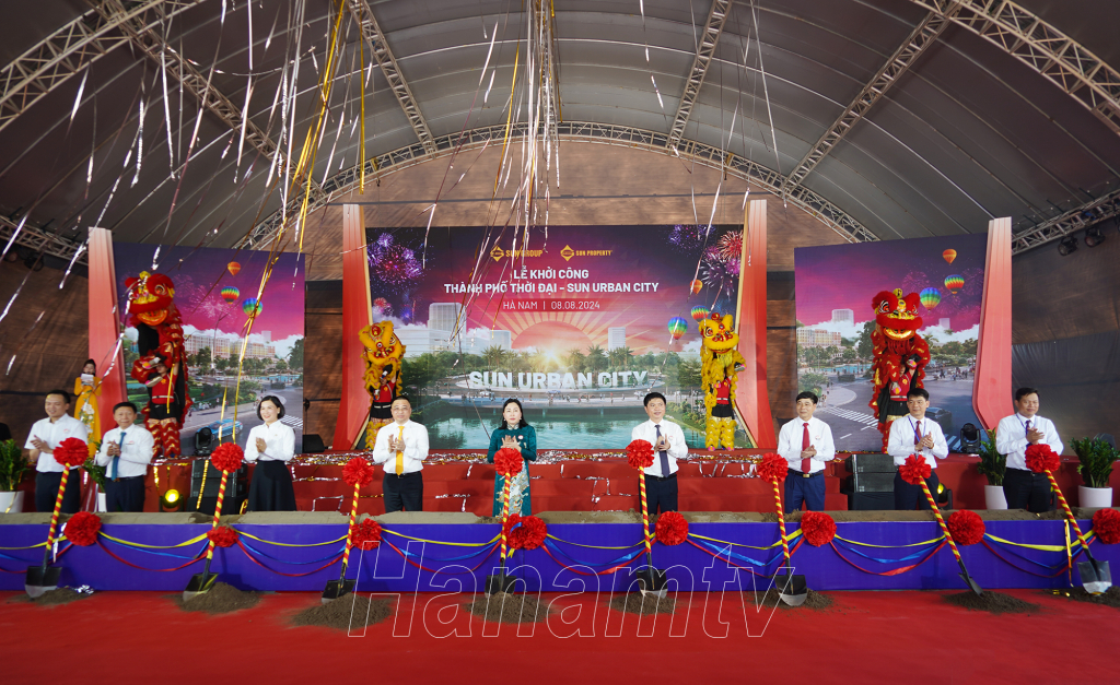 Các đồng chí Thường trực Tỉnh ủy dự lễ khởi công Dự án Thành phố Thời đại - Sun Urban City tại thành phố Phủ Lý, tỉnh Hà Nam.