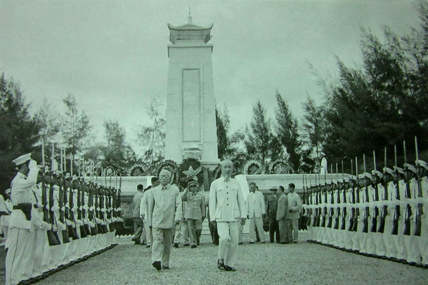 Ngày 2/9/1955, Bác Hồ cùng các đồng chí lãnh đạo Đảng, Nhà nước tới đặt vòng hoa viếng các liệt sĩ tại Nghĩa trang Mai Dịch, Hà Nội. Ảnh: Bảo tàng Hồ Chí Minh