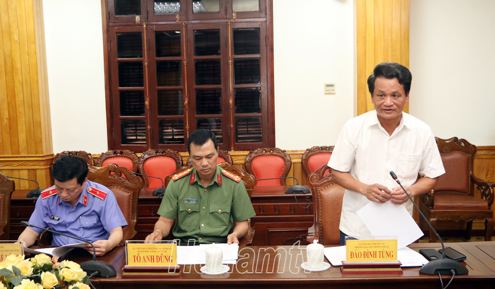 Đồng chí Đào Đình Tùng, Ủy viên BTV Tỉnh ủy, Trưởng Ban Nội chính Tỉnh ủy, Phó Trưởng ban thường trực BCĐ tỉnh về phòng chống tham nhũng, tiêu cực báo cáo tại hội nghị.