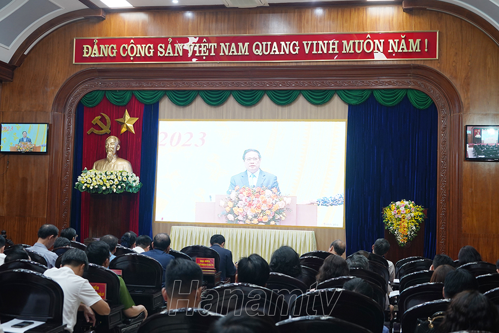 Toàn cảnh hội nghị tại điểm cầu tỉnh Hà Nam.