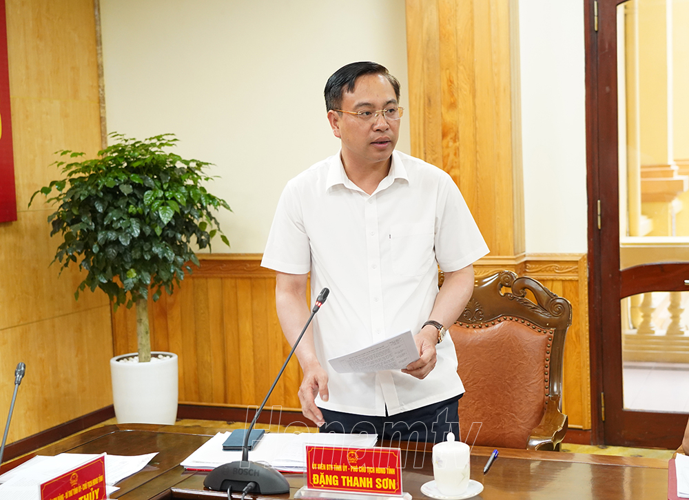 Đồng chí Đặng Thanh Sơn, Ủy viên BTV Tỉnh ủy, Phó Chủ tịch Thường trực UBND tỉnh điều hành thảo luận tại phiên họp