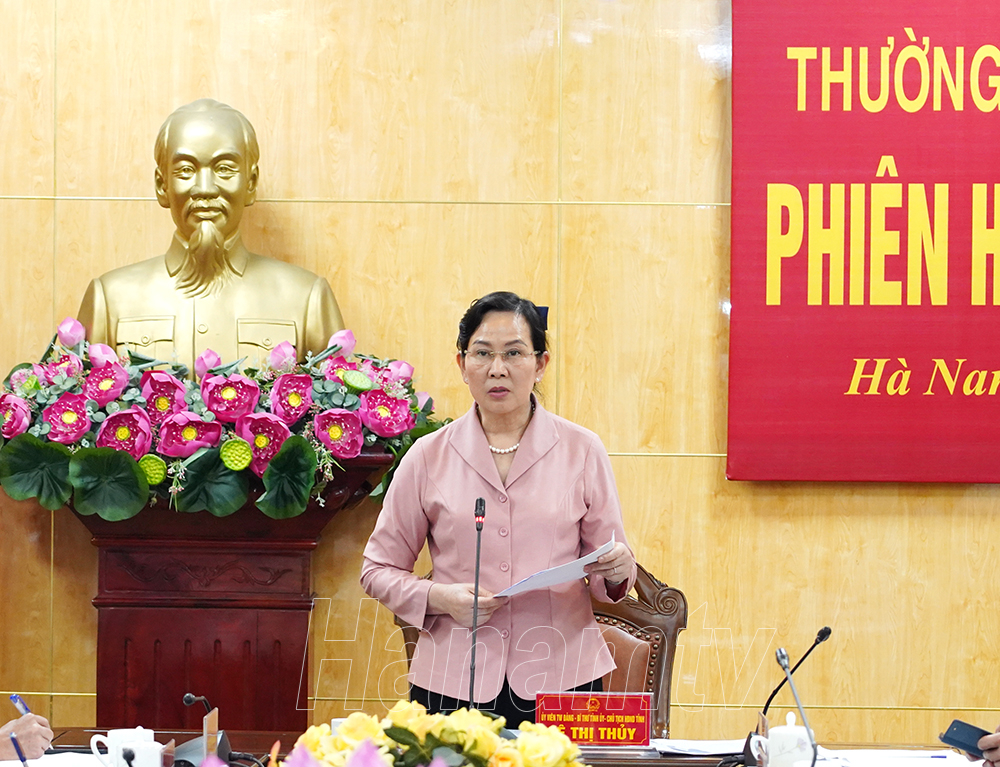 Trên cơ sở các ý kiến thảo luận tại phiên họp, đồng chí Lê Thị Thủy, Ủy viên TW Đảng, Bí thư Tỉnh ủy, Chủ tịch HĐND tỉnh đề nghị trong thời gian tới các cấp, ngành, địa phương tập trung rà soát, đánh giá tình hình triển khai thực hiện các nghị quyết của HĐND tỉnh, kịp thời phát hiện những khó khăn, vướng mắc để có giải pháp tháo gỡ, sớm đưa các nghị quyết đi vào cuộc sống, nhất là các cơ chế chính sách hỗ trợ trực tiếp cho người dân, đảm bảo phát huy hiệu quả thực chất; tập trung triển khai thực hiện các giải pháp đột phá, đẩy nhanh tiến độ thực hiện Kế hoạch đầu tư công năm 2023, tháo gỡ khó khăn, đẩy nhanh tiến độ thực hiện các dự án trọng điểm của tỉnh, đảm bảo tỷ lệ giải ngân vốn đầu tư công nhất là các dự án sử dụng nguồn vốn từ chương trình phục hồi và phát triển kinh tế - xã hội.