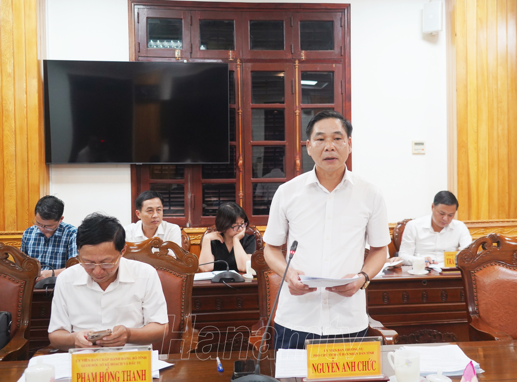 Đồng chí Đặng Thanh Sơn, Ủy viên BTV Tỉnh ủy, Phó Chủ tịch Thường trực HĐND tỉnh thay mặt Đảng đoàn HĐND tỉnh báo cáo dự kiến thời gian, chương trình Kỳ họp thứ 19 - HĐND tỉnh khóa XIX.Đồng chí Nguyễn Anh Chức, Ủy viên BTV Tỉnh ủy, Phó Chủ tịch Thường trực UBND tỉnh thay mặt Ban cán sự Đảng UBND tỉnh báo cáo các nội dung trình Kỳ họp thứ 19 - HĐND tỉnh khóa XIX.Giám đốc Sở Tài chính Nguyễn Anh Tuấn phát biểu làm rõ một số nội dung liên quan đến các tờ trình, dự thảo Nghị quyết thuộc lĩnh vực tài chính, ngân sách dự kiến trình HĐND tỉnh.
