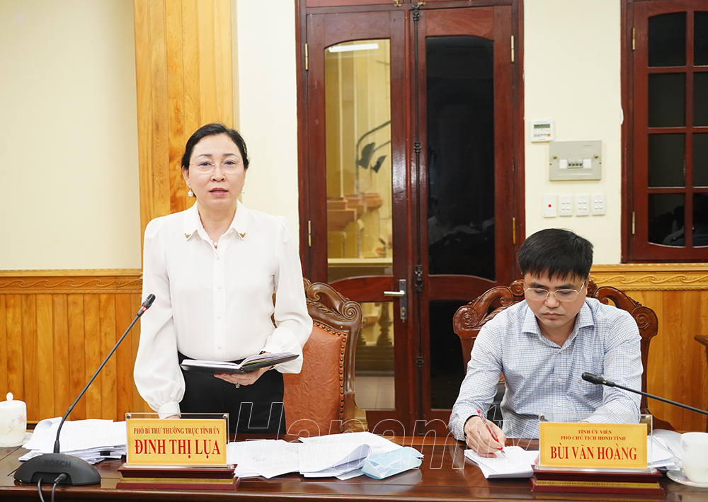Đồng chí Đinh Thị Lụa, Phó Bí thư Thường trực Tỉnh ủy phát biểu tại hội nghị.
