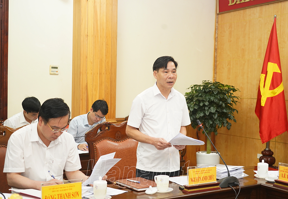Đồng chí Nguyễn Anh Chức, Ủy viên BTV Tỉnh ủy, Phó Chủ tịch Thường trực UBND tỉnh thay mặt Ban Cán sự Đảng UBND tỉnh báo cáo các nội dung dự kiến trình Kỳ họp chuyên đề HĐND tỉnh.