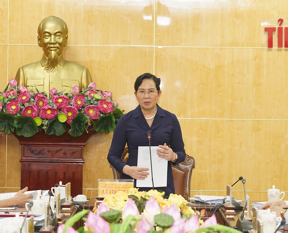Đồng chí Lê Thị Thủy, Ủy viên TW Đảng, Bí thư Tỉnh ủy, Chủ tịch HĐND tỉnh chủ trì hội nghị.