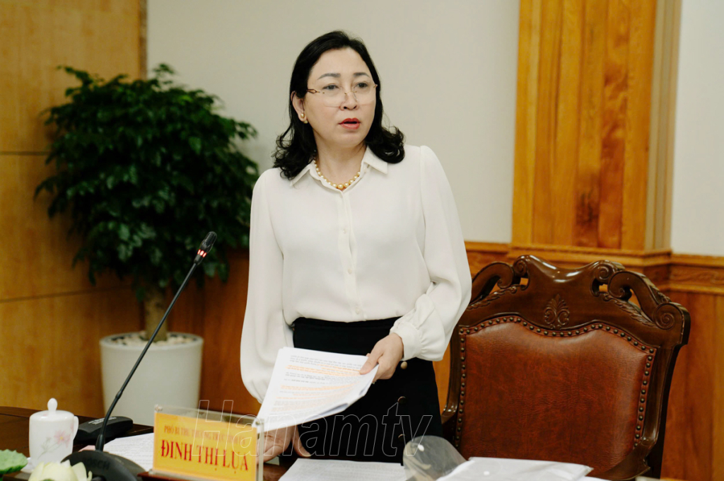 Đồng chí Phó Bí thư Thường trực Tỉnh ủy Đinh Thị Lụa phát biểu tại hội nghị