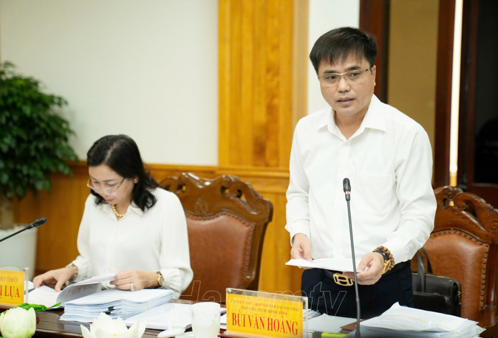 Đồng chí Bùi Văn Hoàng, Tỉnh ủy viên, Phó Chủ tịch HĐND tỉnh thay mặt Đảng đoàn HĐND tỉnh báo cáo tại hội nghị.