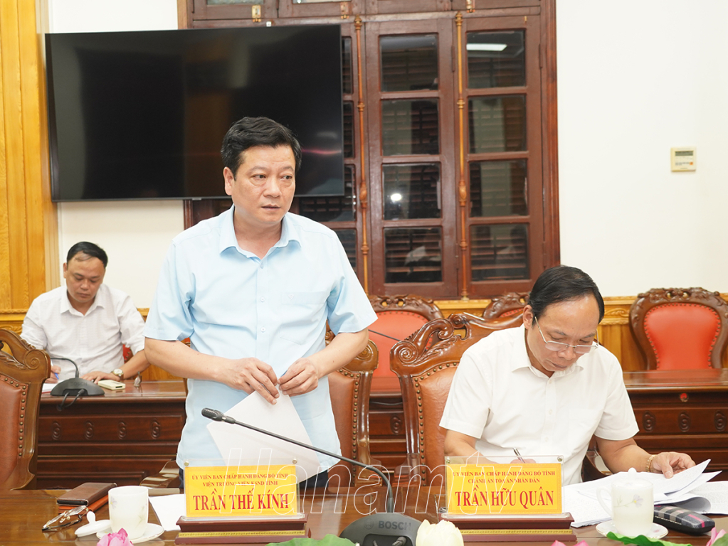 Đồng chí Trần Thế Kính, Tỉnh ủy viên, Viện trưởng Viện Kiểm sát nhân dân tỉnh phát biểu tại hội nghị.