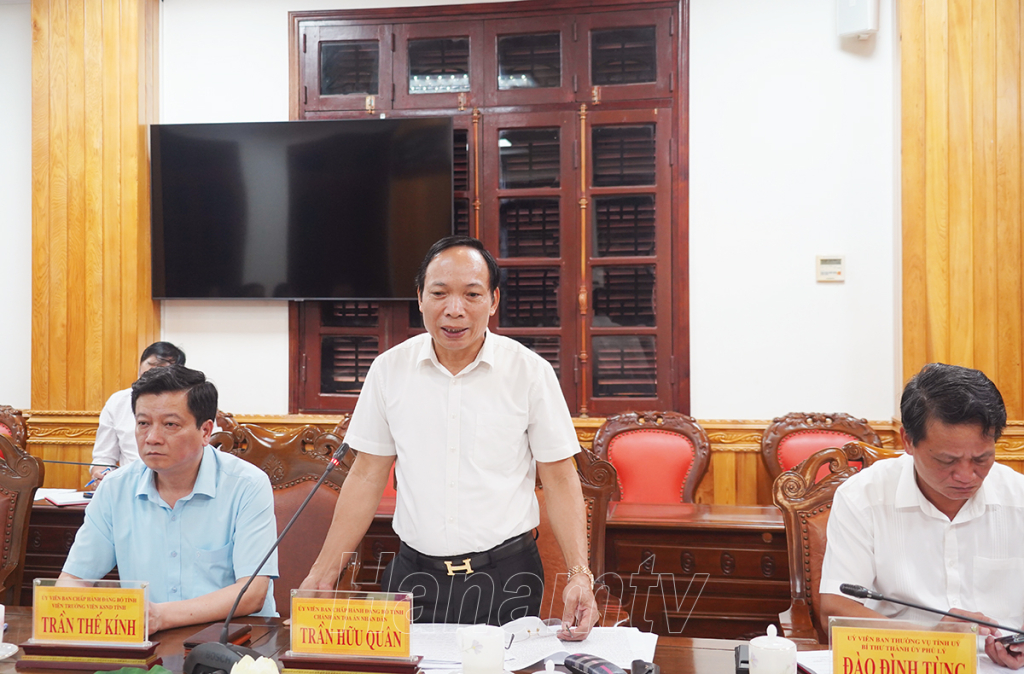Đồng chí Trần Hữu Quân, Tỉnh ủy viên, Chánh án Tòa án Nhân dân tỉnh phát biểu tại hội nghị.