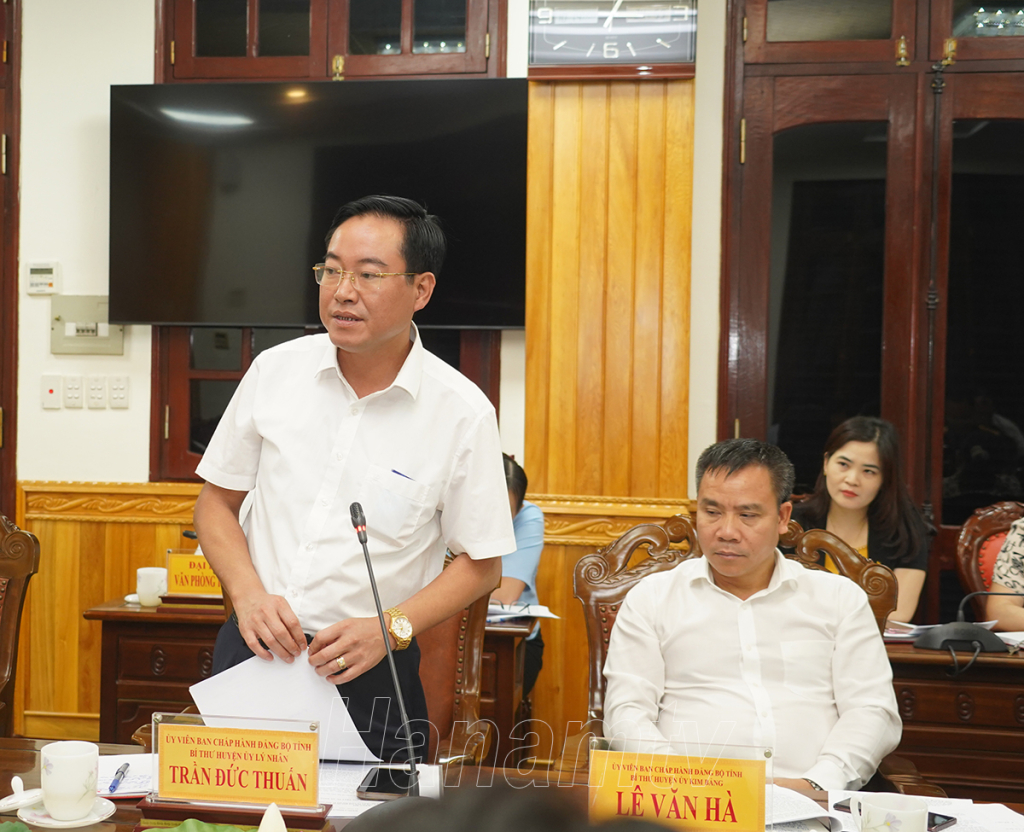 Đồng chí Trương Công Khải, Tỉnh ủy viên, Bí thư Huyện ủy Bình Lục phát biểu tại hội nghị.Đồng chí Trần Đức Thuấn, Tỉnh ủy viên, Bí thư Huyện ủy Lý Nhân phát biểu tại hội nghị.