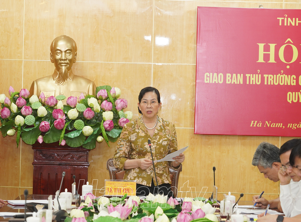 Đồng chí Lê Thị Thủy, Ủy viên Trung ương Đảng, Bí thư Tỉnh ủy, Chủ tịch HĐND tỉnh chủ trì hội nghị.