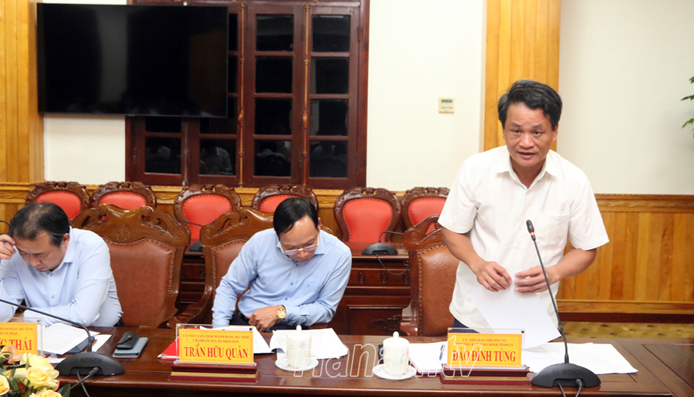 Đồng chí Đào Đình Tùng, Ủy viên BTV Tỉnh ủy, Trưởng Ban Nội chính Tỉnh ủy báo cáo tại hội nghị.