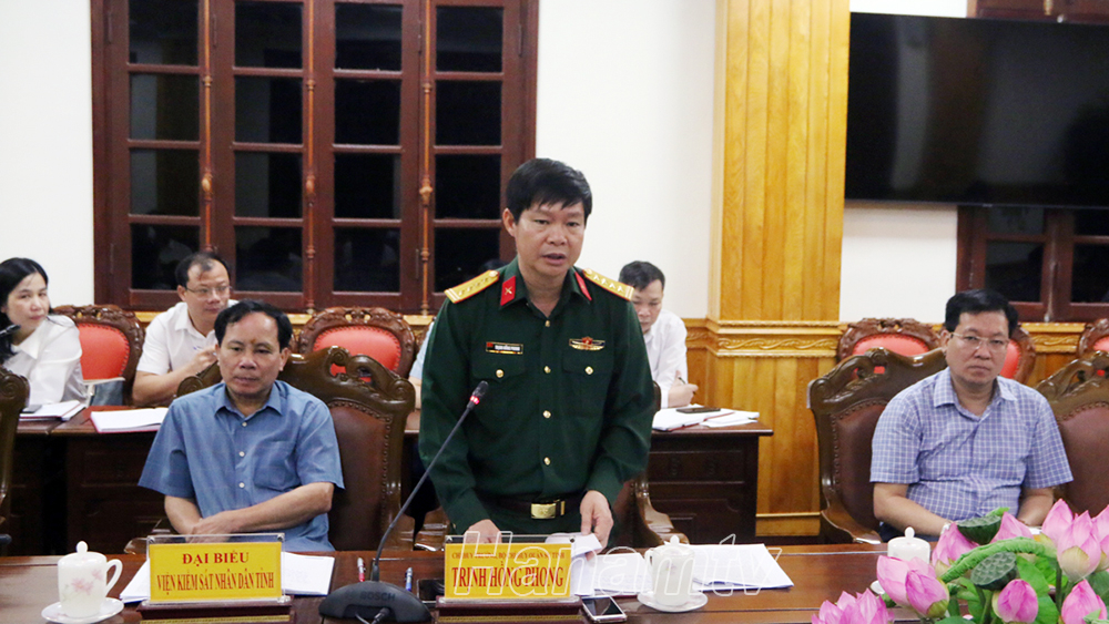 Lãnh đạo Bộ Chỉ huy quân sự tỉnh phát biểu thảo luận tại hội nghị.
