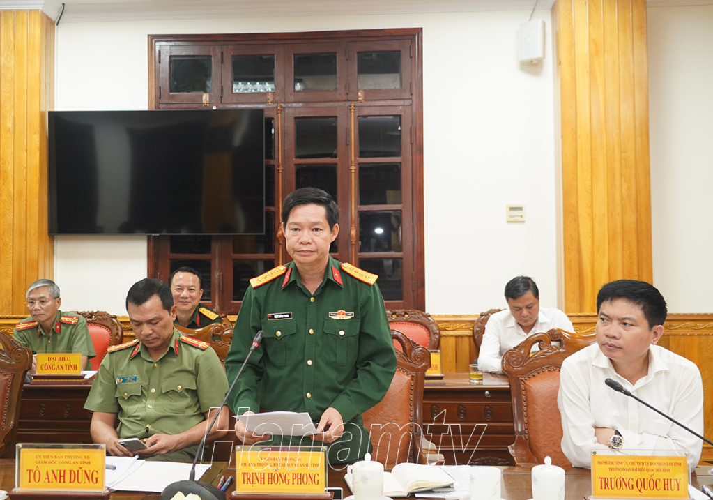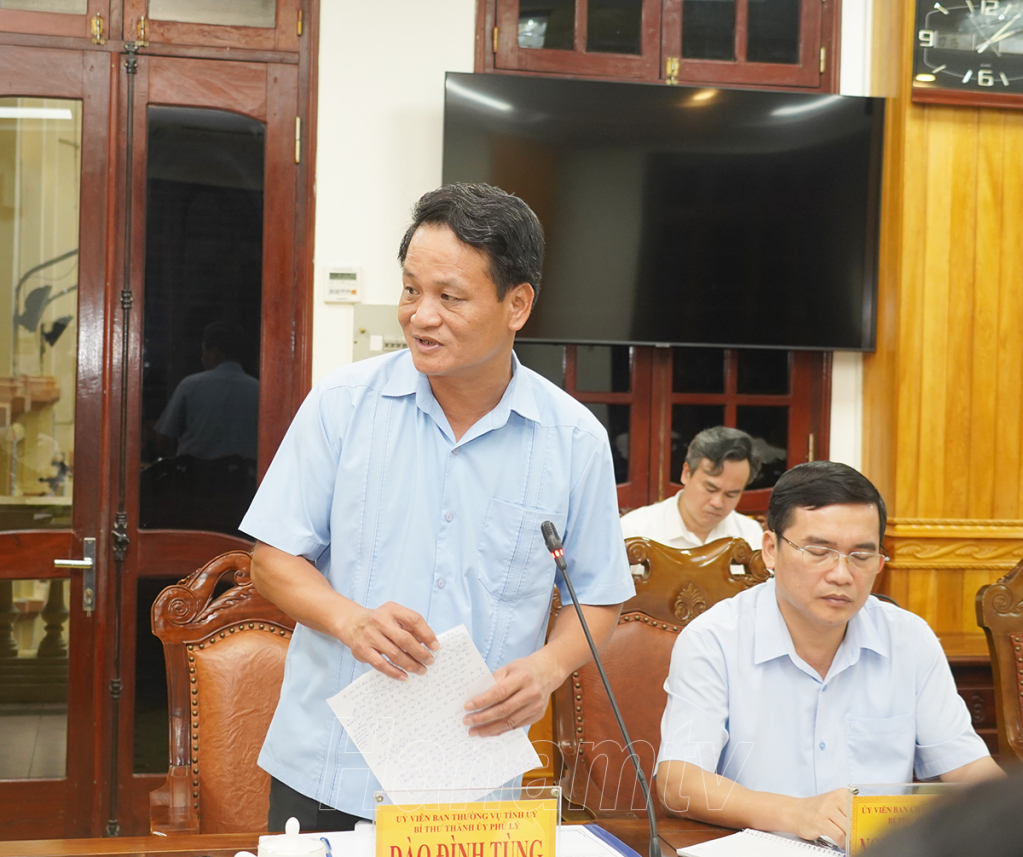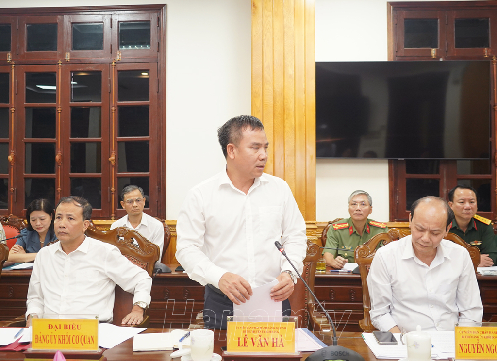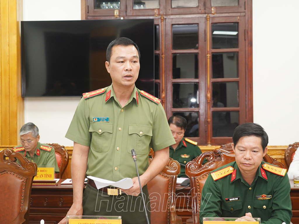 Đại tá Tô Anh Dũng, Ủy viên BTV Tỉnh ủy, Giám đốc Công an tỉnh phát biểu tại hội nghị.Đại tá Trịnh Hồng Phong, Ủy viên BTV Tỉnh ủy, Chỉ huy trưởng Bộ CHQS tỉnh phát biểu tại hội nghị.Đồng chí Đào Đình Tùng, Ủy viên BTV Tỉnh ủy, Bí thư Thành ủy Phủ Lý phát biểu tại hội nghị.