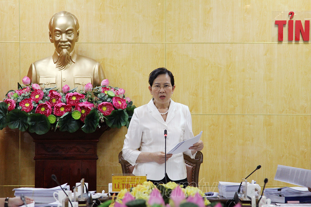 Đồng chí Lê Thị Thủy, Ủy viên Trung ương Đảng, Bí thư Tỉnh ủy, Chủ tịch HĐND tỉnh phát biểu kết luận hội nghị.
