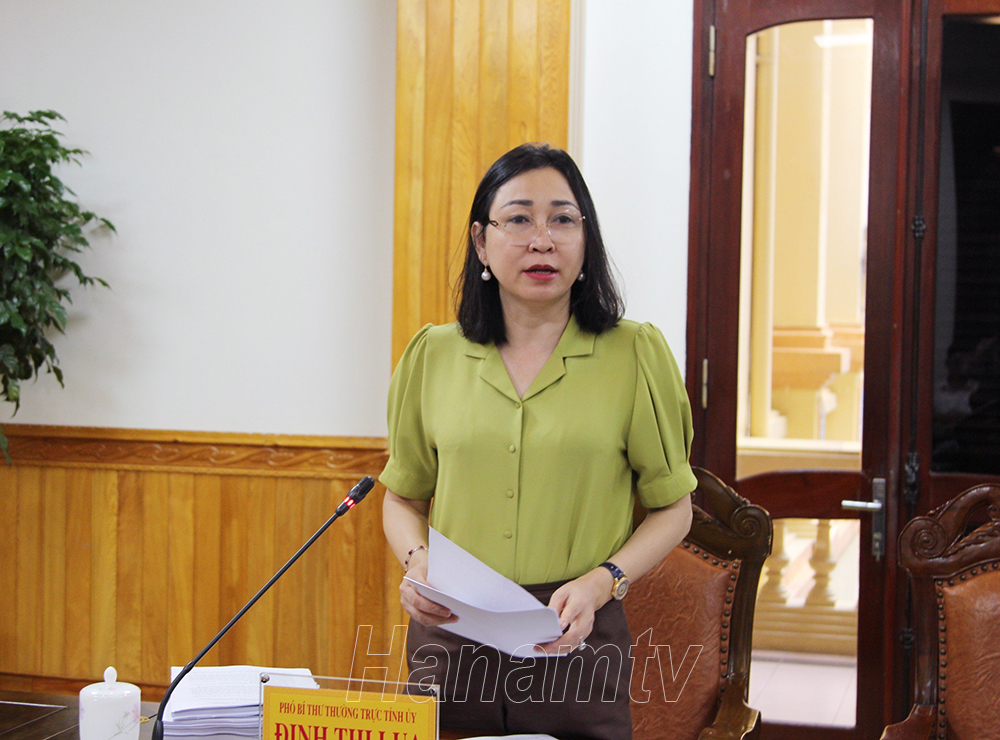 Đồng chí Đinh Thị Lụa, Phó Bí thư Thường trực Tỉnh ủy phát biểu tại hội nghị.