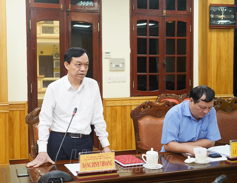 Đồng chí Đặng Đình Thoảng, Ủy viên BTV Tỉnh ủy, Trưởng Ban Tổ chức Tỉnh ủy phát biểu tại hội nghị.