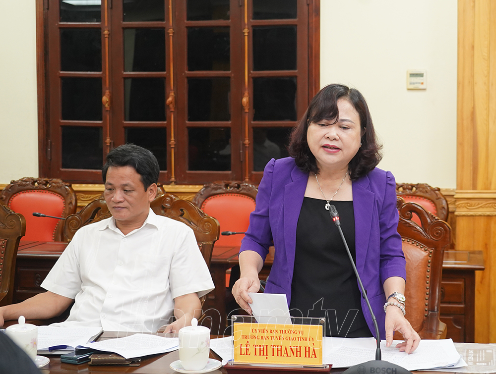 Đồng chí Lê Thị Thanh Hà, Ủy viên BTV Tỉnh ủy, Trưởng Ban Tuyên giáo Tỉnh ủy phát biểu tại hội nghị.