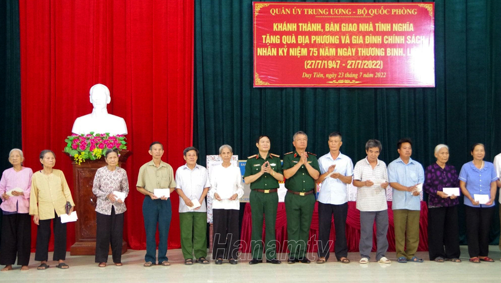 Nhân kỷ niệm 75 năm Ngày Thương binh -Liệt sĩ, ngày 23/7 đoàn công tác Quân ủy Trung ương, Bộ Quốc phòng do Thượng tướng Nguyễn Tân Cương, Ủy viên TW Đảng, Ủy viên Thường vụ Quân ủy Trung ương, Tổng tham mưu trưởng Quân đội nhân dân (QĐND) Việt Nam, Thứ trưởng Bộ Quốc phòng làm Trưởng đoàn đã về thăm, tặng quà tại Trung tâm Điều dưỡng thương binh Duy Tiên, các gia đình chính sách và khánh thành tặng nhà tình nghĩa tại xã Tiên Ngoại – TX Duy Tiên.