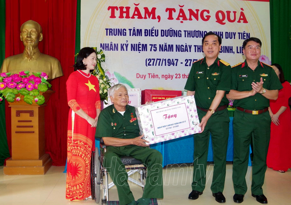 Nhân dịp này, lãnh đạo Bộ Tổng Tham mưu, Quân khu 3, lãnh đạo UBND tỉnh và Bộ CHQS tỉnh, thị xã Duy Tiên đã tặng quà, động viên các thương, bệnh binh tại Trung tâm.