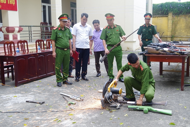 Tiêu hủy hơn 100 khẩu súng tự chế, 200 dùi cui điện, dao phớ, đao, kiếm