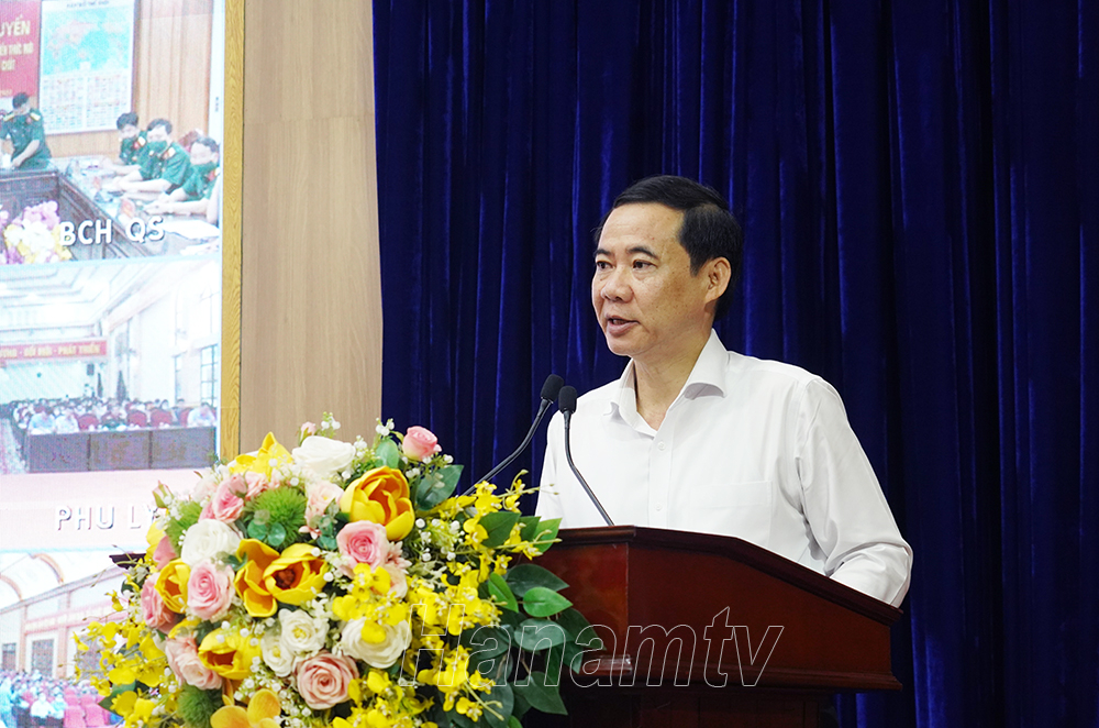 Các đại biểu tham dự hội nghị tại điểm cầu Bộ CHQS tỉnh.Các đại biểu tham dự hội nghị tại điểm cầu huyện Lý Nhân.