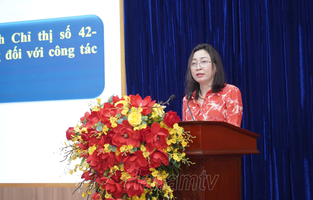 Đồng chí Đinh Thị Lụa, Phó Bí thư Thường trực Tỉnh ủy quán triệt, triển khai Chỉ thị số 42-CT/TW ngày 16/01/2025 của Bộ Chính trị tại hội nghị.