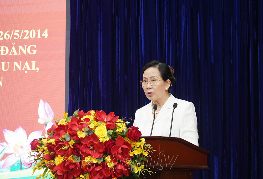 Đồng chí Bí thư Tỉnh ủy Lê Thị Thủy phát biểu chỉ đạo tại hội nghị.