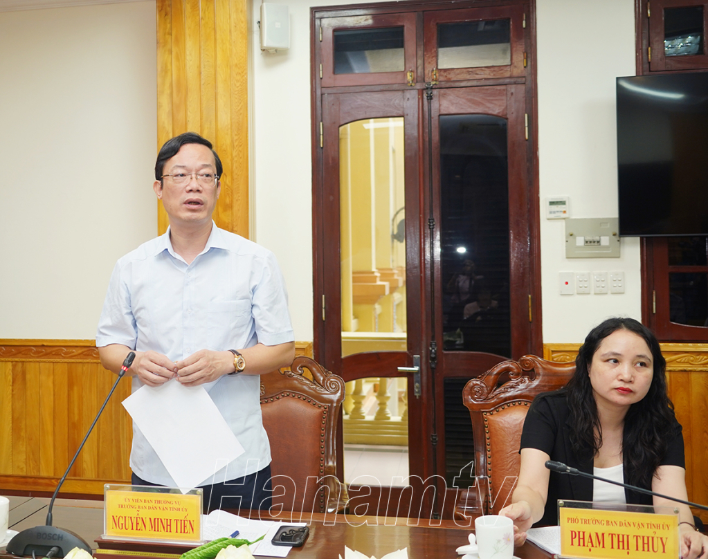 Đồng chí Nguyễn Minh Tiến, Ủy viên BTV Tỉnh ủy, Trưởng Ban Dân vận Tỉnh ủy phát biểu tại Tọa đàm.