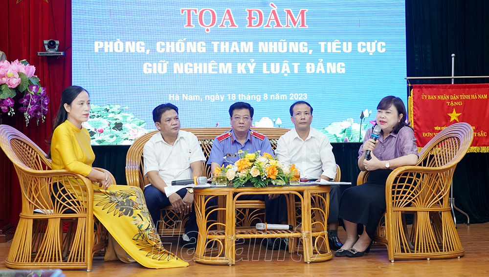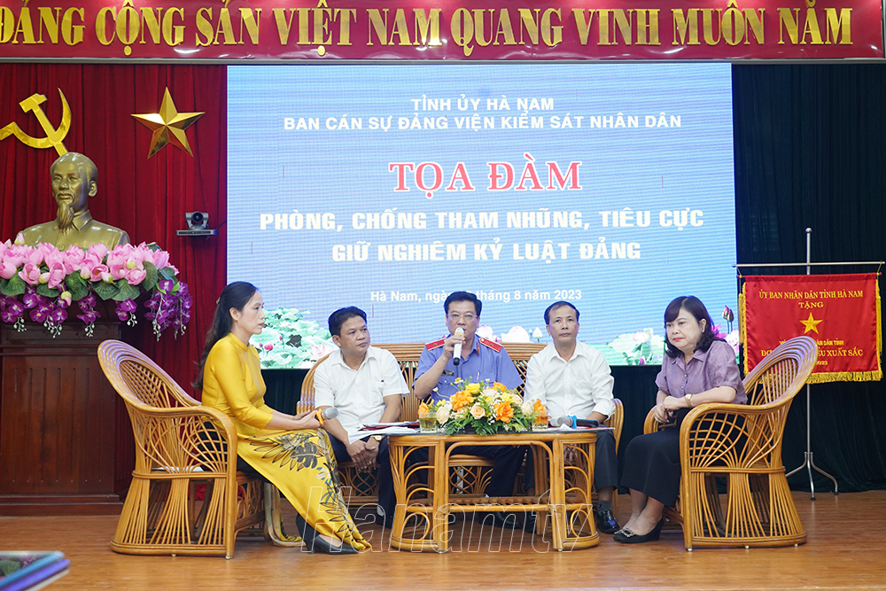 Báo cáo Đề dẫn tại buổi tọa đàm khẳng định: Thời gian qua Ban cán sự đảng, Đảng ủy, Lãnh đạo VKSND tỉnh Hà Nam đã quán triệt, triển khai thực hiện tốt Nghị quyết Trung ương 4 khóa XII, khóa XIII về tăng cường xây dựng, chỉnh đốn Đảng và hệ thống chính trị gắn với việc thực hiện Chỉ thị số 05-CT/TW của Bộ Chính trị về “Đẩy mạnh học tập và làm theo tư tưởng, đạo đức, phong cách Hồ Chí Minh”. Đồng thời, tăng cường kỷ luật, kỷ cương, coi đây là một trong các giải pháp quan trọng trong công tác xây dựng chỉnh đốn Đảng, góp phần nâng cao chất lượng đội ngũ công chức, Kiểm sát viên, bảo đảm hoàn thành tốt chức năng, nhiệm vụ mà Đảng, Nhà nước và nhân dân giao cho, từng bước đáp ứng tốt yêu cầu cải cách tư pháp trong tình hình mới.