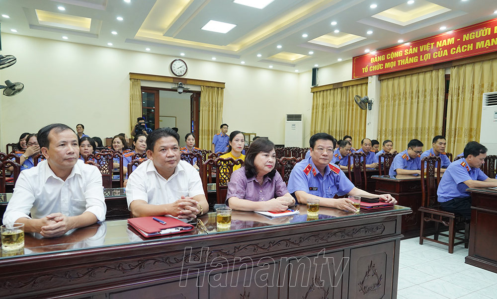 Hội nghị được truyền hình trực tuyến từ điểm cầu chính - trụ sở Viện Kiểm sát nhân dân tỉnh tới điểm cầu VKSND các huyện, thị xã, thành phố trong tỉnhCác đại biểu dự Tọa đàm tại điểm cầu Viện kiểm sát Nhân dân tỉnh