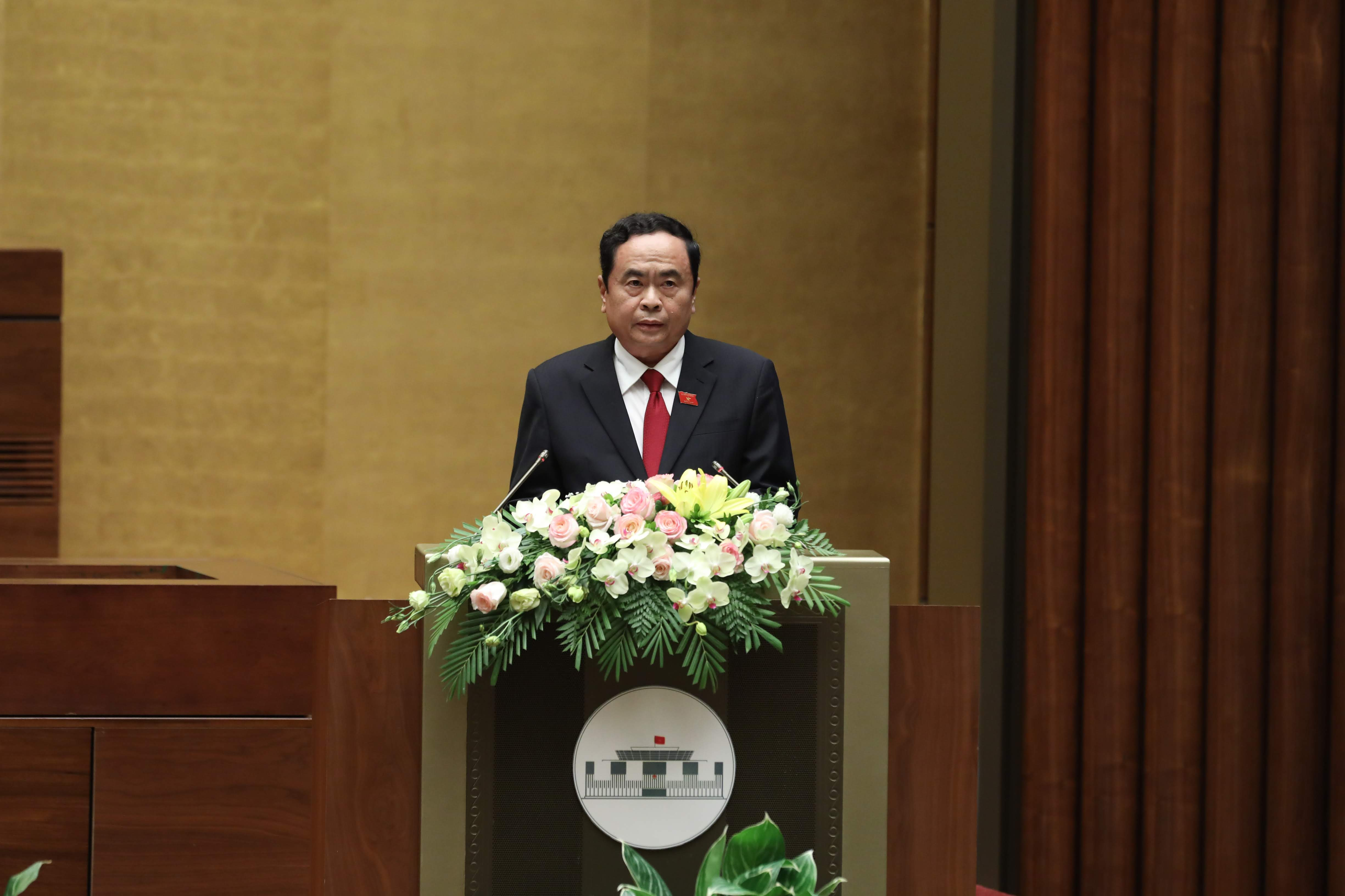 Tiếp đó, Chủ tịch Ủy ban Trung ương Mặt trận Tổ quốc Việt Nam Trần Thanh Mẫn trình bày Báo cáo tổng hợp ý kiến, kiến nghị của cử tri và nhân dân.