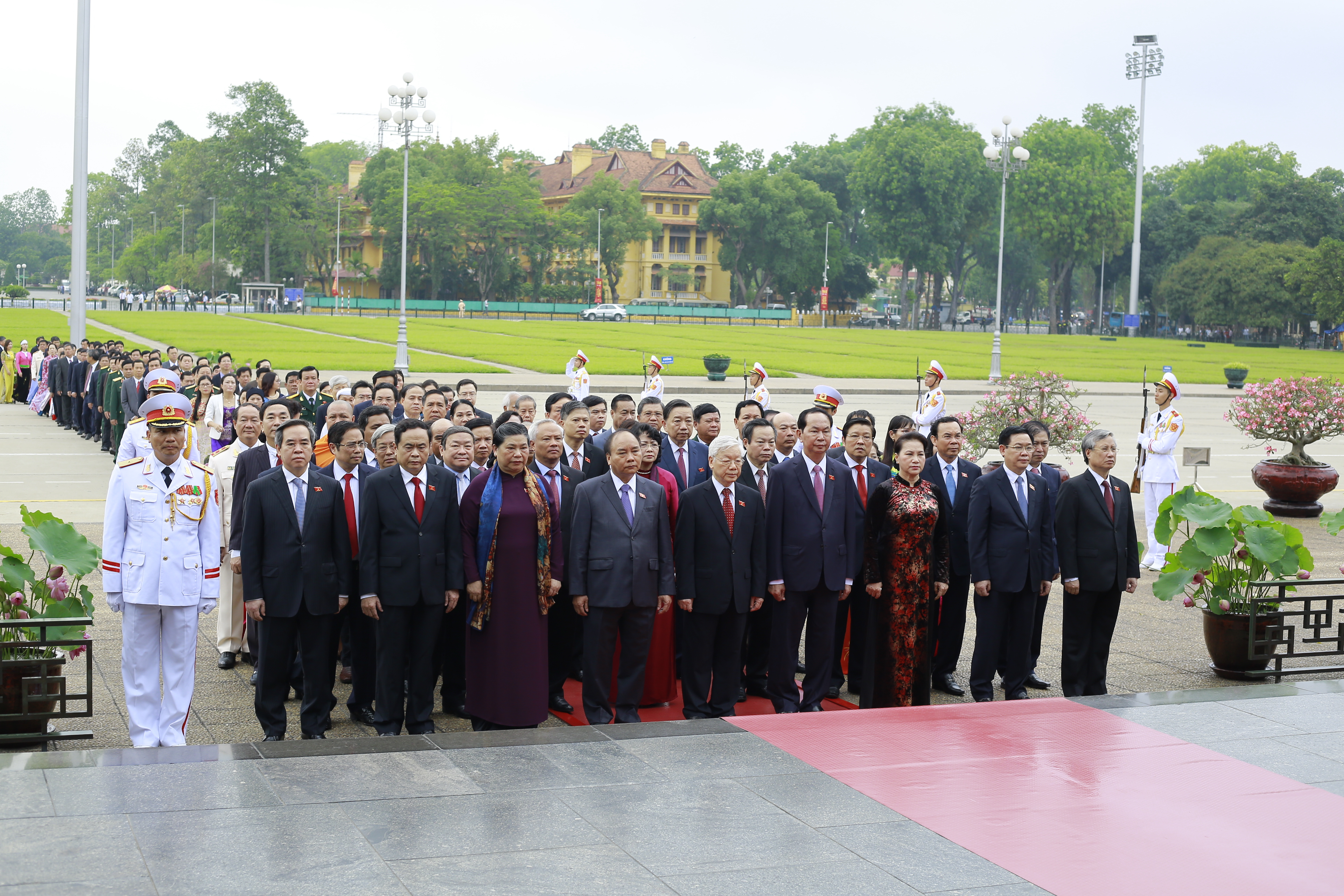 * Trước đó, lãnh đạo Ðảng, Nhà nước và đại diện các Ðoàn đại biểu Quốc hội đã đặt vòng hoa, vào Lăng viếng Chủ tịch Hồ Chí Minh. Quốc hội cũng đã họp phiên trù bị, thảo luận và biểu quyết thông qua Chương trình làm việc của Kỳ họp thứ 4, Quốc hội khóa XIV.  |