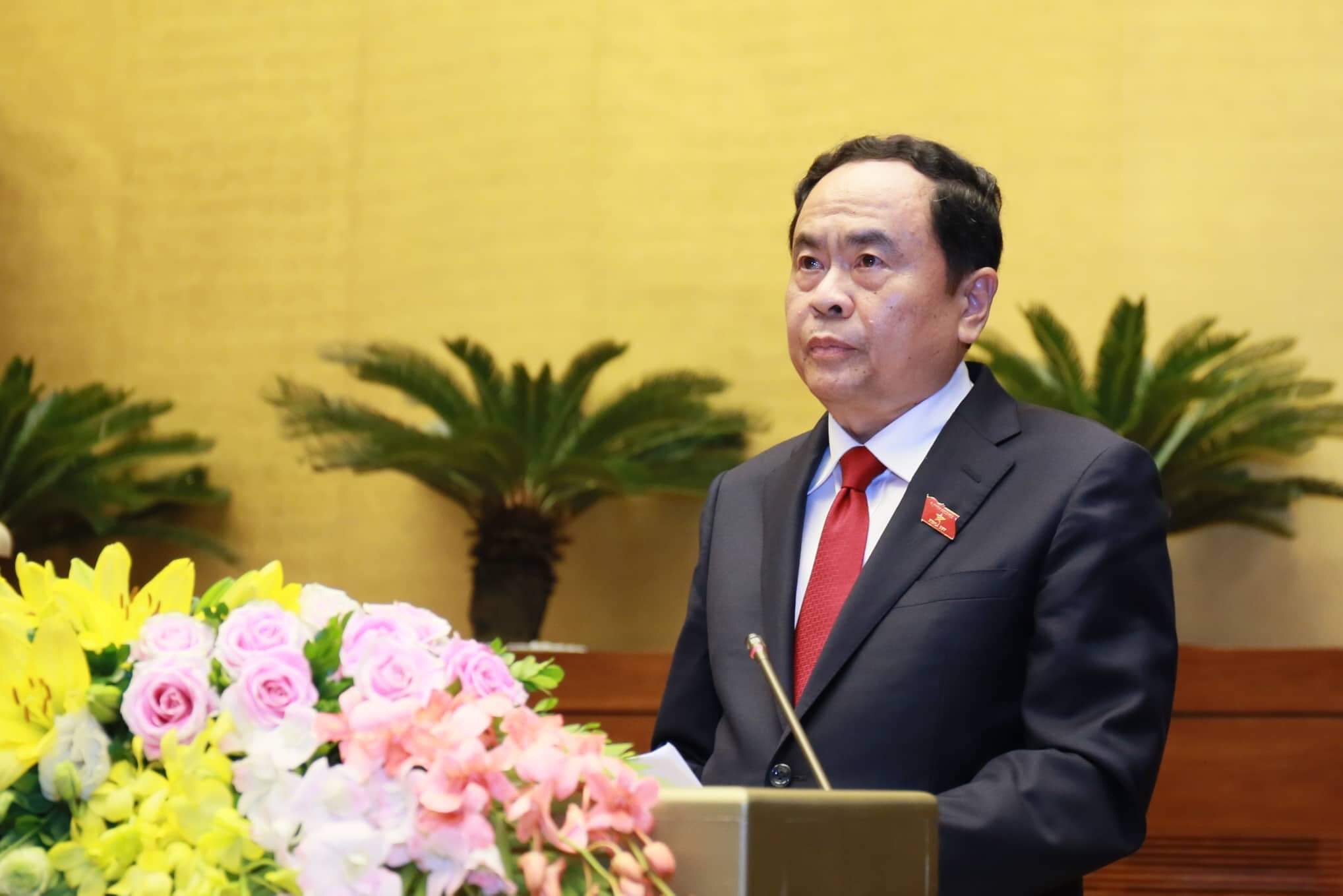 Chủ tịch Ủy ban Trung ương Mặt trận Tổ quốc Việt Nam Trần Thanh Mẫn trình bày Báo cáo tổng hợp ý kiến, kiến nghị của cử tri và nhân dân.