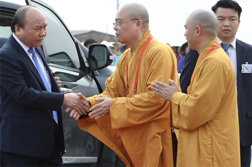 Thủ tướng đánh giá cao chủ đề Vesak 2019 về sự lãnh đạo toàn cầu và trách nhiệm cùng chia sẻ vì xã hội bền vững. "Mỗi người hãy là sứ giả của Đức Phật để hiện thực hoá thông điệp hoà bình, yêu thương vào cuộc sống, góp phần hoá giải xung đột, khổ đau, để mọi người được sống yên vui".