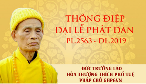 Trong thông điệp gửi đến Vesak 2019, Đức trưởng lão Hòa thượng Thích Phổ Tuệ (Pháp chủ Giáo hội Phật giáo Việt Nam) nhấn mạnh đây là sự kiện thiêng liêng gắn với cuộc đời Đức Phật : ngày Đức Phật đản sinh, ngày Đức Phật thành đạo, và ngày Đức Phật nhập Niết bàn và là sự kiện hy hữu của toàn nhân loại. "Vesak 2019 là cơ hội quý báu để chúng ta cùng nhau tăng trưởng niềm tin vào chân lý giải thoát, phát huy giá trị những di sản mà Đức Thế tôn đã để lại cho nhân loại trong hệ thống tư tưởng giáo lý vô giá về trí tuệ, lòng từ bi, triết lý vô ngã, tinh thần bất bạo động, những giá trị hòa bình và phát triển bền vững".
