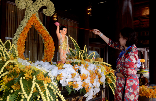 Các Phật tử thực hiện nghi lễ tắm Phật truyền thống