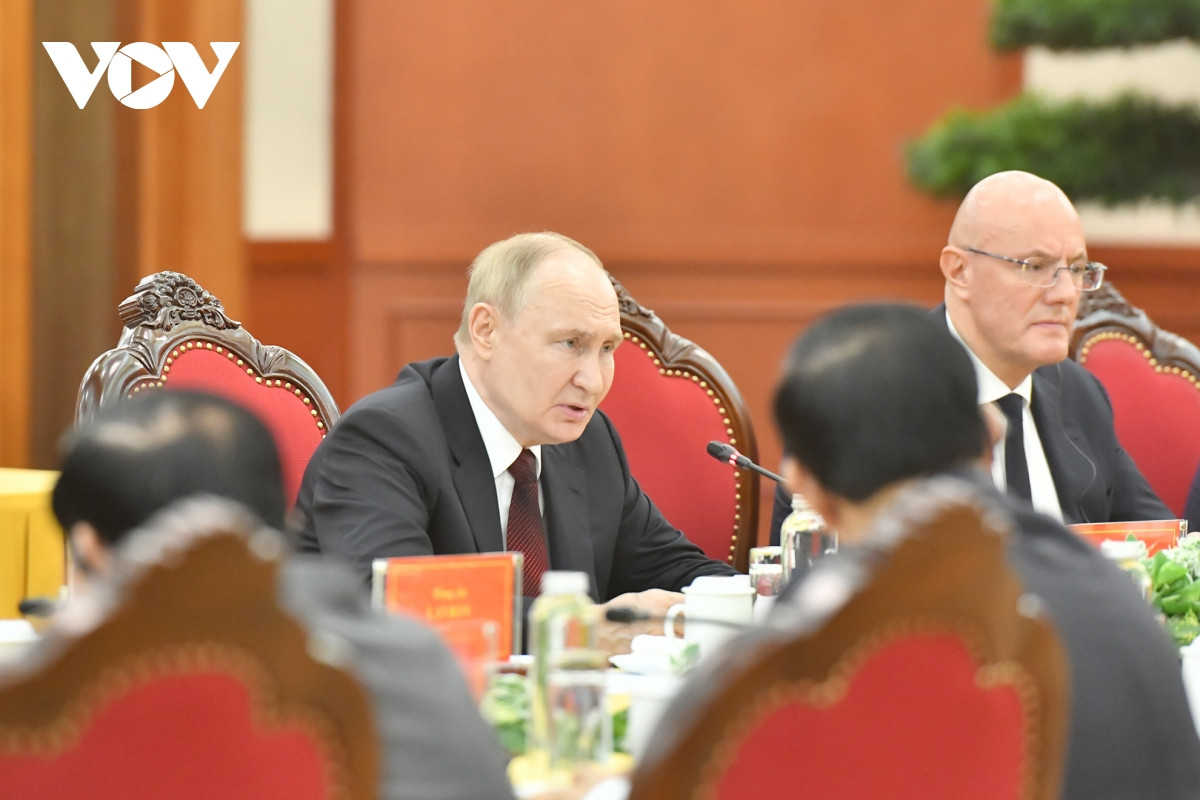 Tổng thống Vladimir Putin bày tỏ vui mừng thăm Việt Nam và gặp lại Tổng Bí thư Nguyễn Phú Trọng, nhấn mạnh Việt Nam là bạn, đối tác tin cậy của Liên bang Nga; mối quan hệ hai nước đã được thử thách qua thời gian; phát triển quan hệ đối tác chiến lược toàn diện với Việt Nam là ưu tiên trong chính sách đối ngoại của Nga tại khu vực châu Á – Thái Bình Dương; tin tưởng chuyến thăm sẽ tạo xung lực mới trong quan hệ hai nước.