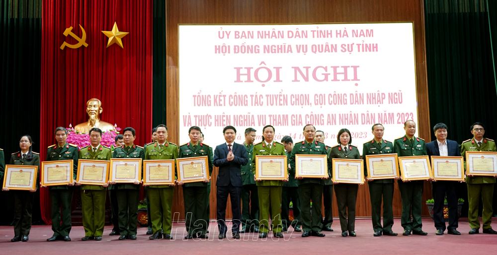 Chủ tịch UBND tỉnh Hà Nam Trương Quốc Huy tặng Bằng khen cho các tập thể có thành tích xuất sắcCác tập thể, cá nhân có thành tích xuất sắc trong công tác tuyển chọn, gọi công dân nhập ngũ năm 2023 được UBND tỉnh biểu dương, khen thưởng tại hội nghị